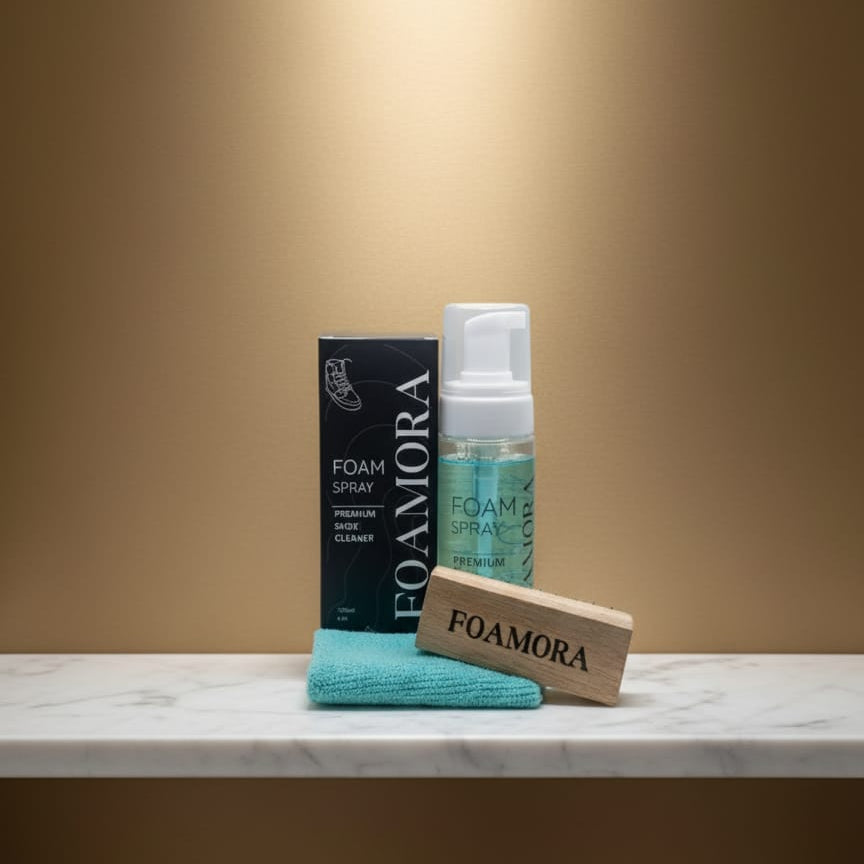Give your shoes a fresh new life with the FOAMORA 3-in-1 Instant Shoe Cleaning Kit. Designed for quick and effortless care, this all-in-one set includes a powerful 150ml cleaning foam, a premium soft-bristle brush, and a free microfiber cloth — everything you need to keep your footwear spotless.